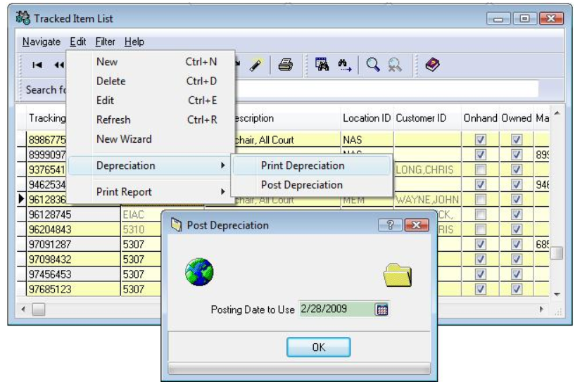 This posts (makes permanent) the depreciation you have previously calculated/printed. Once posted, you will have two journal entries in the Account Unposted List; one for Depreciation Expense and Accumulated Depreciation.