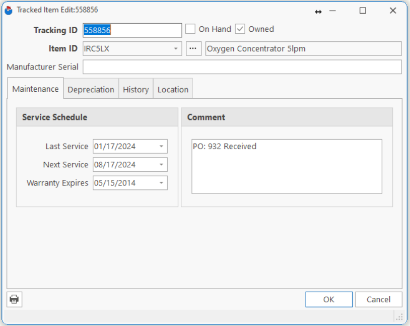 | Tracking ID | The number that you want to use to track this item. The Tracking Number may be your Asset Number, or the Manufacturer’s Serial Number if will not be assigning your own Asset Numbers. |