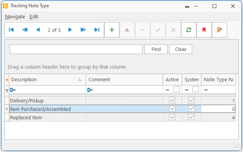 This is a list of Tracking Note Types, which allow the user to automatically enter a comment when entering a Service Transaction.