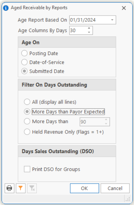 | Step 4 | Age On, click on Submitted Date. This allows you to print only claims which have been submitted to the Payor. We don’t want to call the Payor about anything they have not received yet. |
