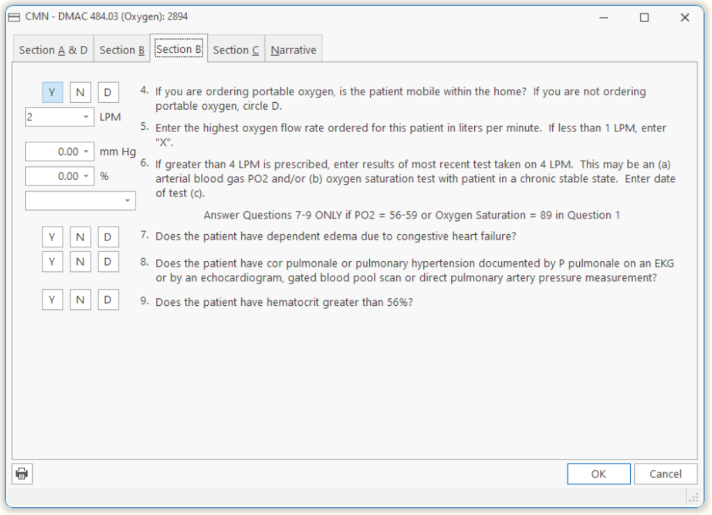 | You should enter CMN information directly from the paper CMN. Once this information is entered, you can always go back and review this document. Although this document is stored in your computer, there are strict guidelines on retaining paper documentation. Medicare has strict conditions on the appearance of CMN’s. You can use a pre-printed form or you can print your CMN’s. TeamDME! recommends a quality laser printer with a duplexer. |