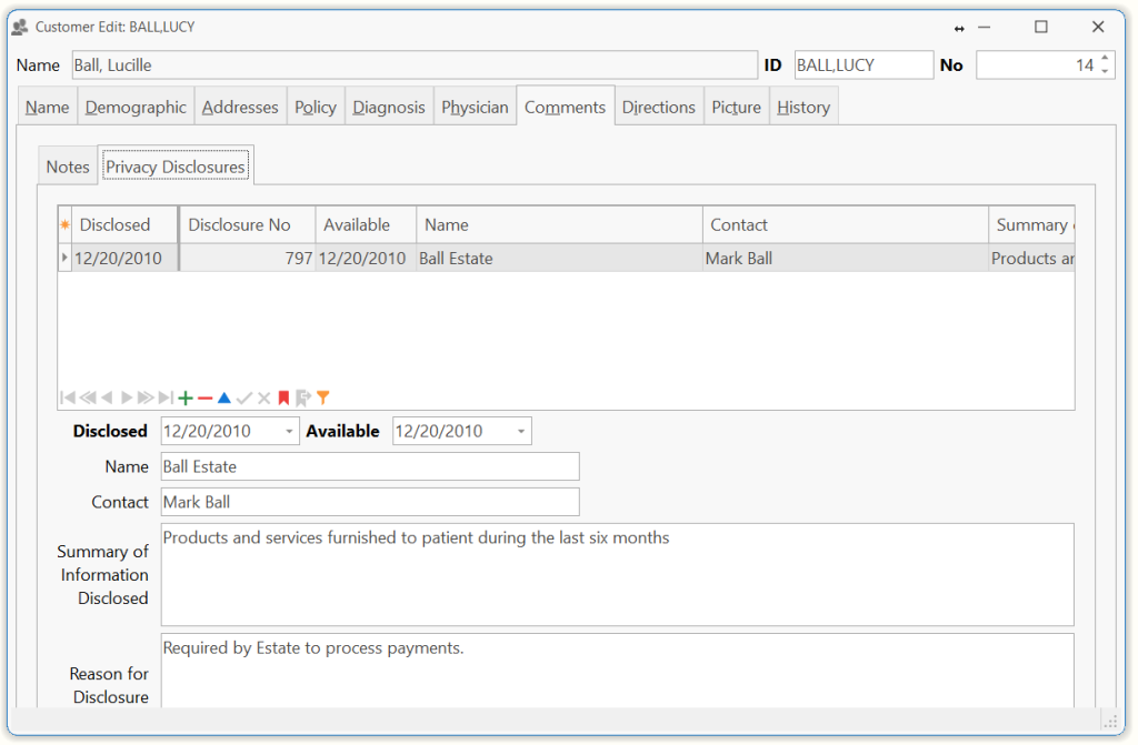 | Reason for Disclosure | Reason for the information to be disclosed. |