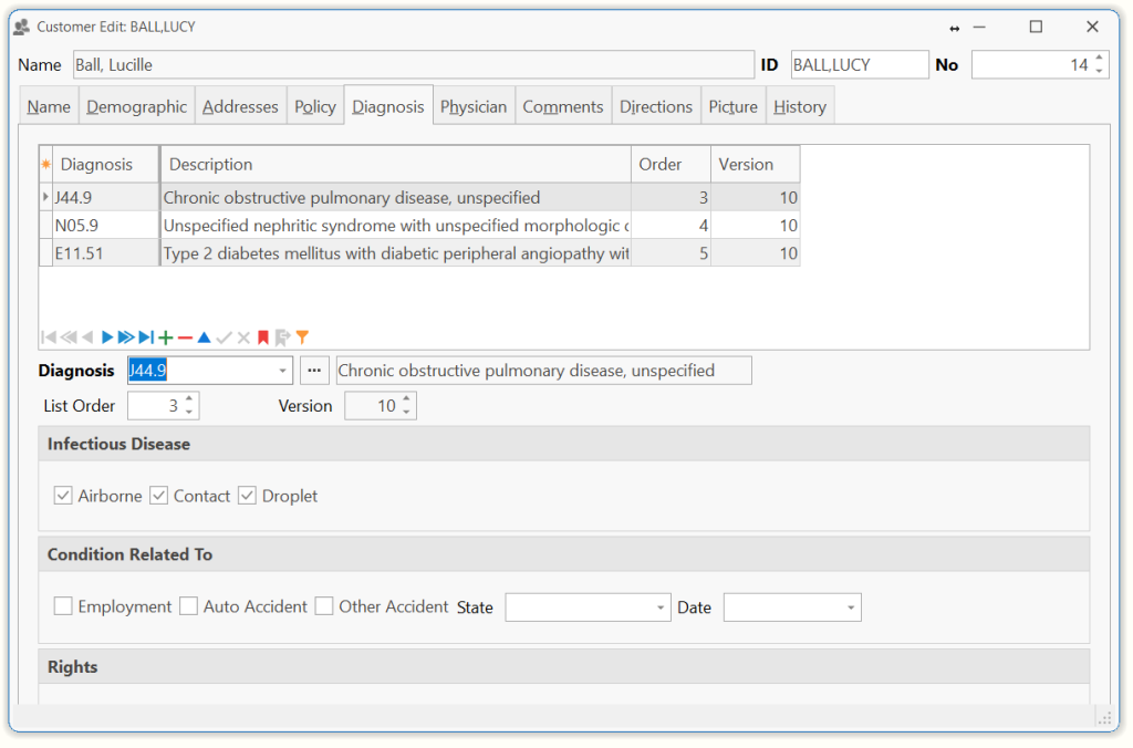 | List Order | The primary order of diagnosis in customer chart.TIP: The first qualifying diagnosis will normally be pulled into new orders. |