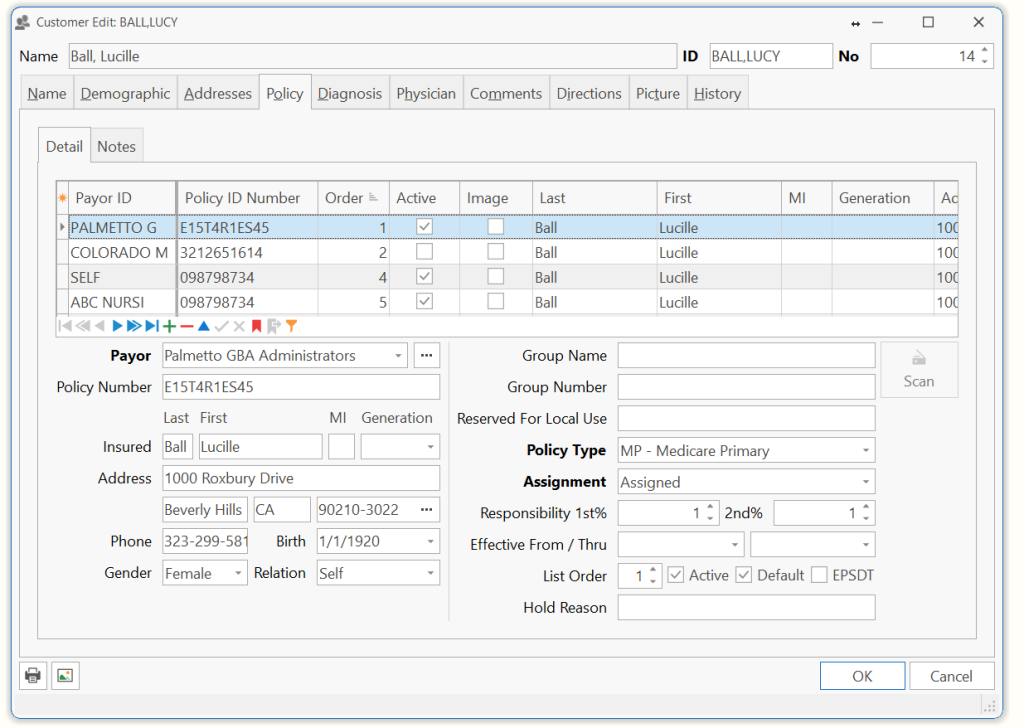 | Effective From/Thru | The effective dates of the insurance policy. User will receive a warning message if attempting to bill an expired policy. | ||||||