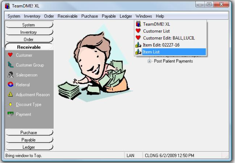 Sometimes you can have so many windows open that it’s hard to find the one you want now. If that happens, just click Windows from the main menu and it will show you a list of all open windows or forms. You can then click on any window to bring it to the front and make it active.
